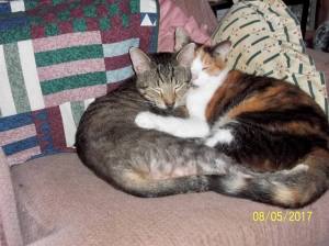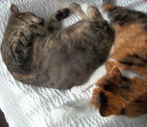 They look so innocent, don’t they? Of bank robbery and murder, as my Dad would have said. In actuality, these cats are naughty little fiends who try to get away with anything they can, including chicken bones if we don’t keep a sharp eye out and a lid on the garbage can.